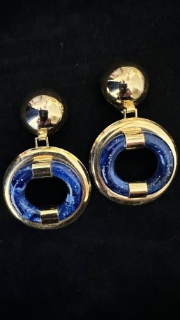 Gold , w/faux blue stone circle enhances costume clip earrings