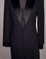 Elongated satin collar matches satin cuff detail.