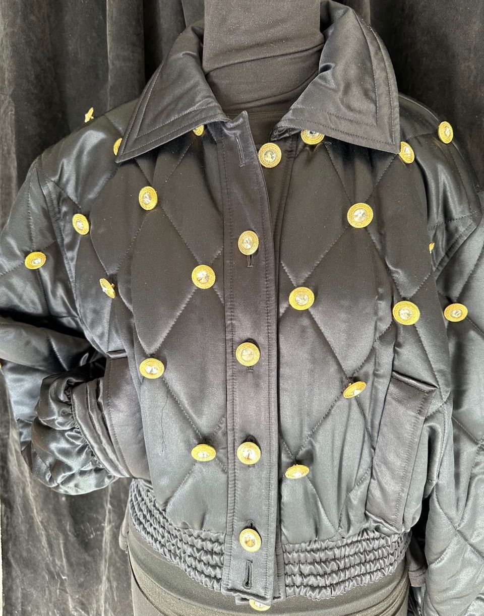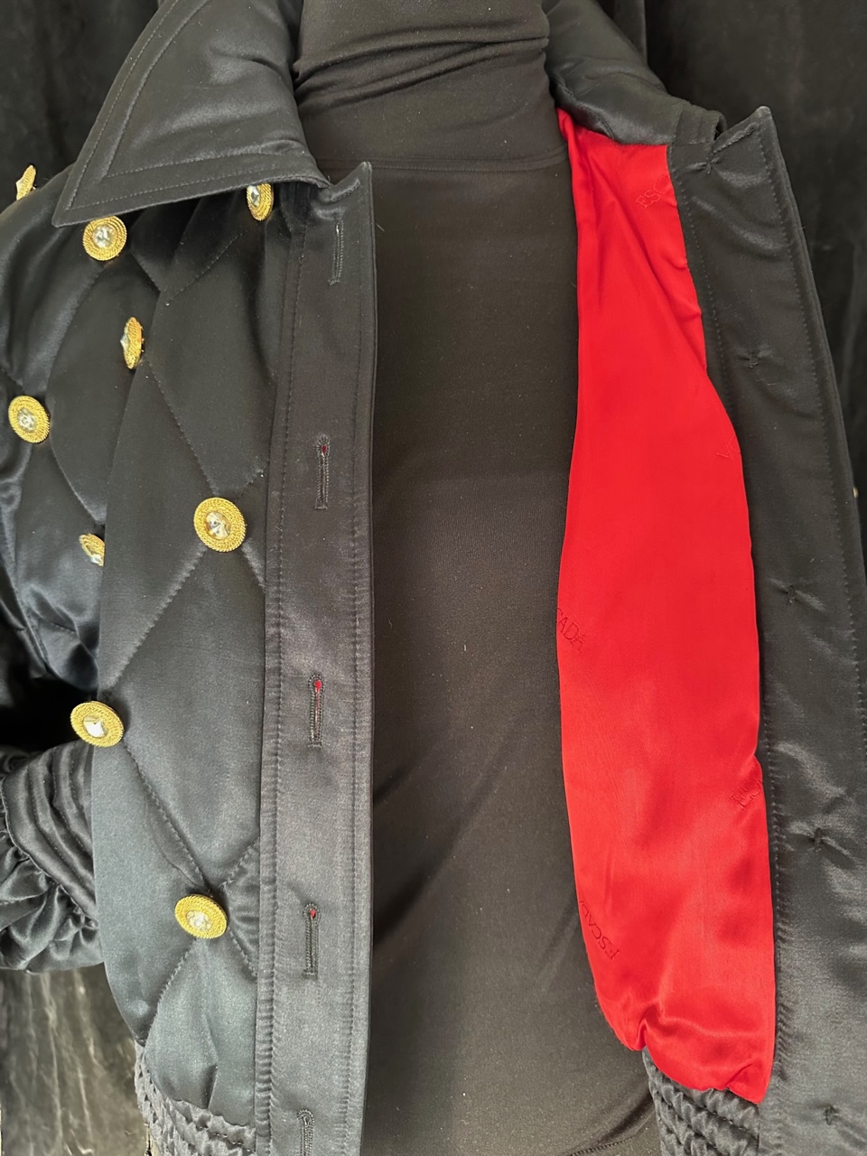 Satin Jacket Embellished with a glam studded button detail and Red satin interior.