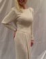 Slight drop ‘v’ waist drapes into soft pleat detail