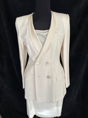 Silk Tuxedo Suit W/ DB Satin, elongated shawl collar