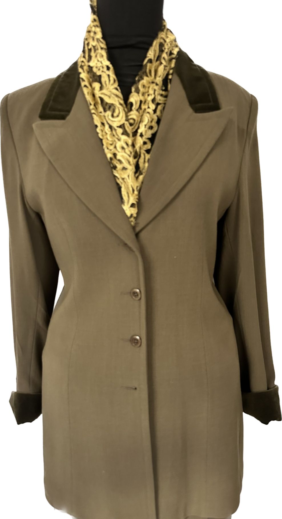 30” long Jacket designed with Velvet collar & turn back cuffs