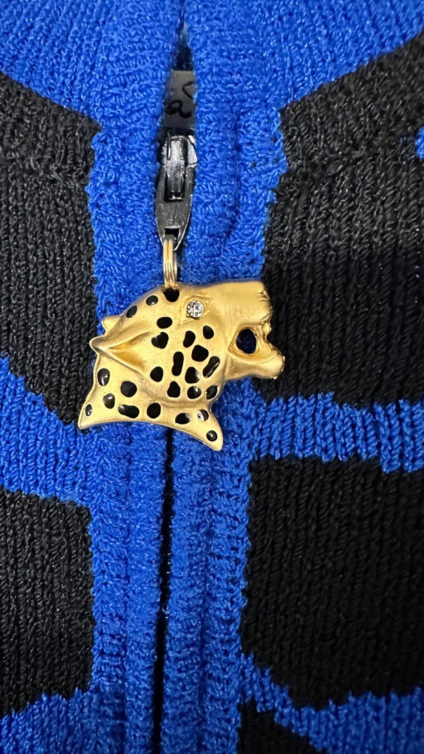 The zipper front closure w/Jaguar head ornament adds a special touch of detail.